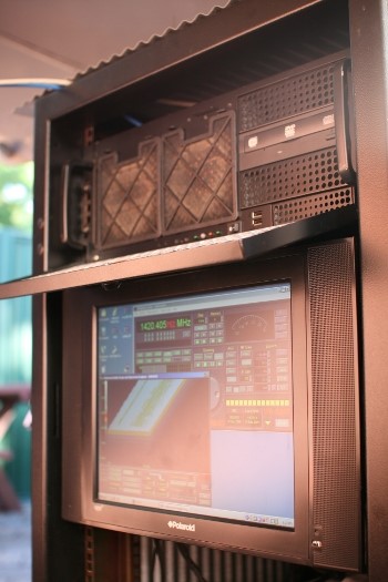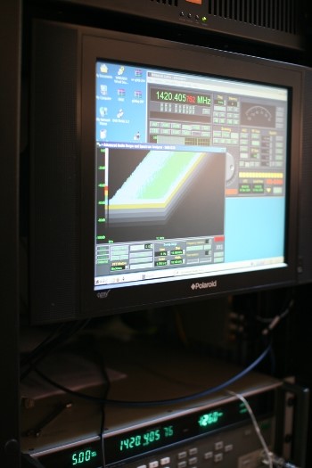 - Currently using a Pentium 4 processor 641 on an ASUS P5PL2-E motherboard with 2Gb of DDR2 SDRAM. Onboard data storage capacity is 2Tb, capable of holding about 6 months of raw data in .wav format. Additional data storage, processing power and memory capacity will be increased as required. The PC is mounted directly below the reflector in a 19" rack due to the 5 metre USB cable length limitation. Shielding techniques have been used extensively to minimise electromagnetic interference generated by the PC affecting reception.