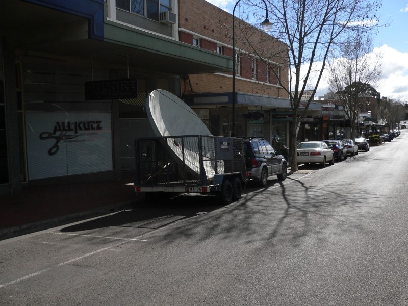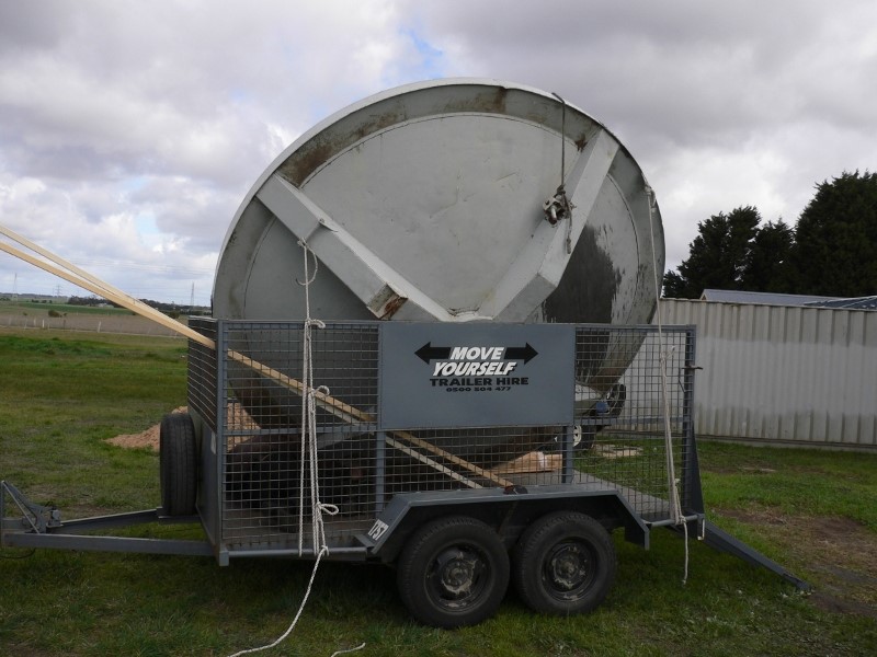 A couple of days later, my brother-in law Tony Davies and I arrived in Geelong with a caged trailer I had hired after having carefully read the oversize road rules for the states of SA and VIC. Convinced we were legally able to transport a 3 metre antenna, we began.