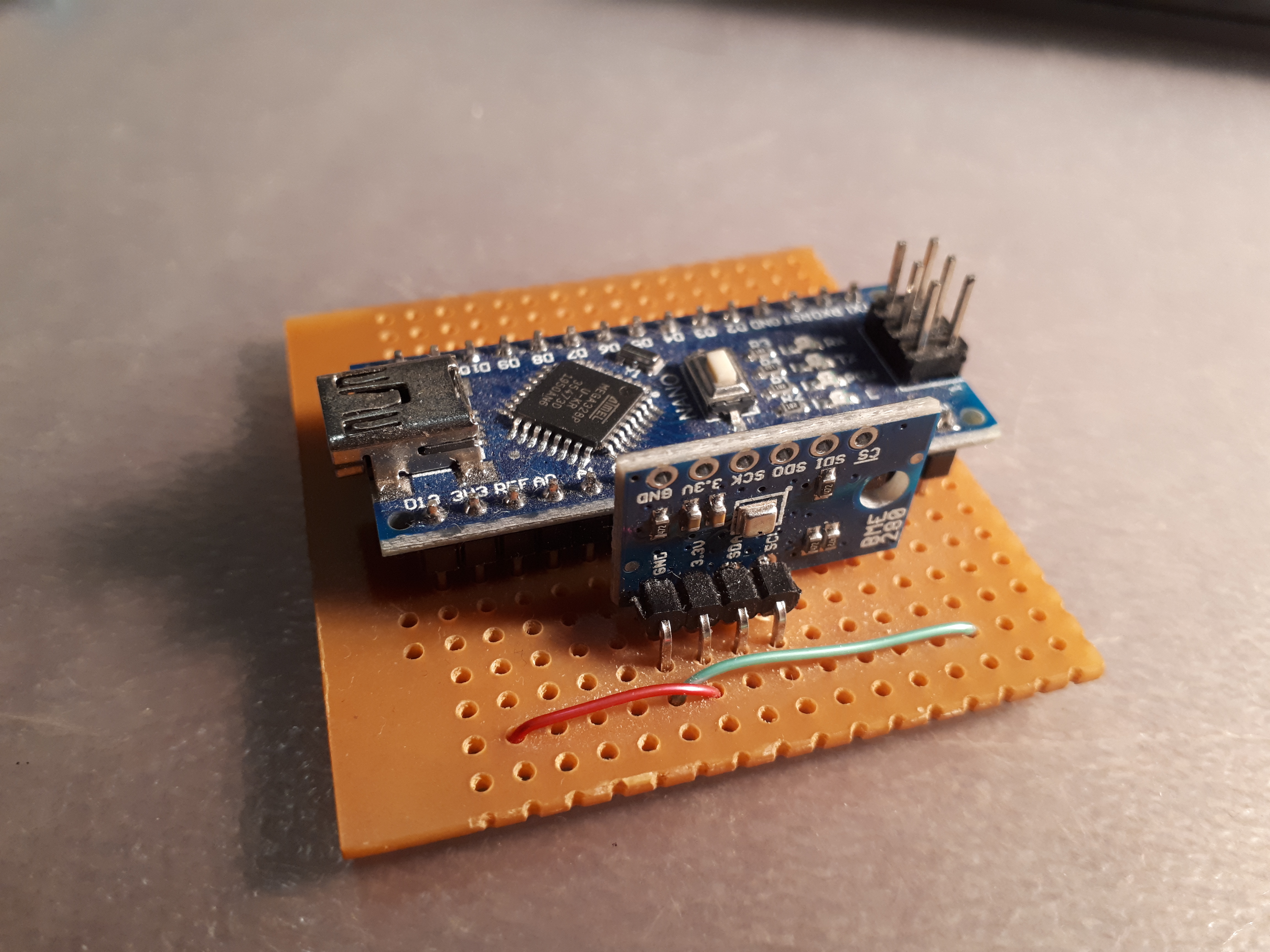 The module communicates with the Arduino via the very common i2c buss / protocol and there are libraries available to assist the hobbyist in writing suitable code to interrogate the sensor, which can output barometric pressure, humidity and temperature.